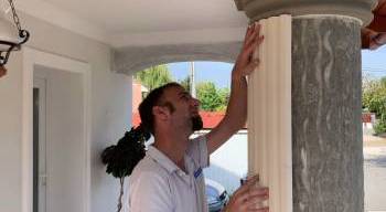 Im ersten Video sehen Sie das Verkleiden einer Säule im Außenbereich – angefangen vom Ausrichten des Säulenfußes über das genaue Anpassen des Säulenkapitells bis hin zum Ankleben des Säulenschaftes. So einfach ist Säulenverkleidung außen, wenn Sie Ihre Betonsäulen mit beschichtetem Styropor verkleiden.