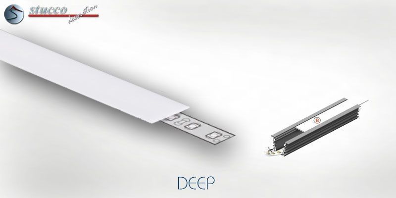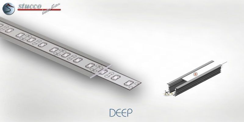 Die Aluminiumleiste DEEP eignet sich hervorragend, um Übergänge zu betonen oder Bereiche optisch voneinander zu trennen. So können z.B. Türöffnungen und Durchgänge damit umrahmt, der Küchenbereich vom Wohn- oder Esszimmer getrennt werden. Um die Wirkung zu verstärken kann diese Aluleiste auch in Stuckleisten aus Styropor eingelassen oder mit Styropor Zierleisten ergänzt werden. Dadurch spendet die indirekte Beleuchtung nicht nur angenehmes Licht, sondern wird sogar zum vielbewunderten Blickfang. Alle LED Strips und RGB Stripes aus unserem Sortiment sind für den Einbau in diese Leiste geeignet.