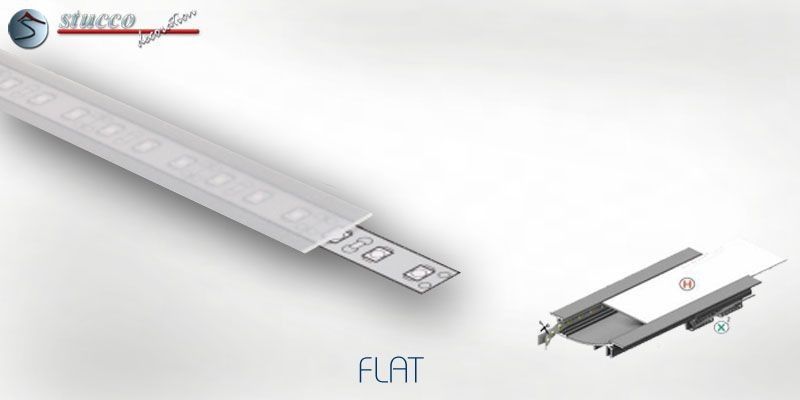 Das Aluprofil FLAT ist für den Einbau von indirekter Beleuchtung mit LED Strips. Die Aluminiumschiene können Sie sowohl an Wänden als auch an und in Möbeln verwenden, zum Beispiel um hinter dem Fernseher angenehmes, indirektes Licht zu erzeugen, das den Fernsehgenuss erhöht. Alle LED Strips und RGB Stripes aus unserem Sortiment sind für den Einbau in diese Leiste geeignet.