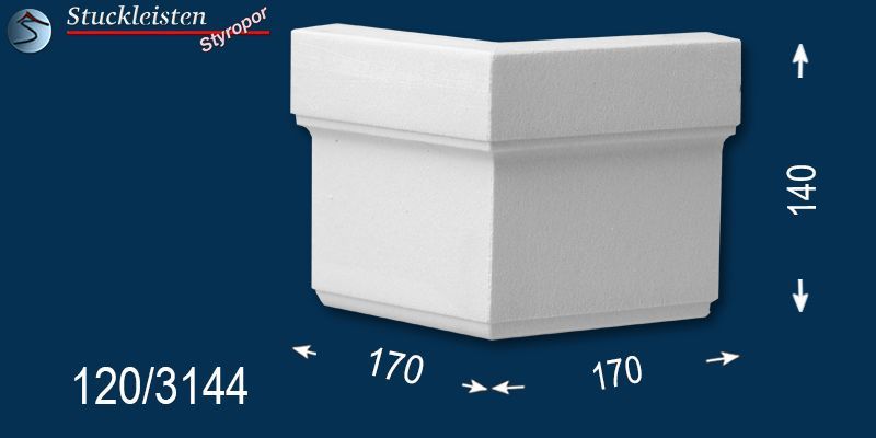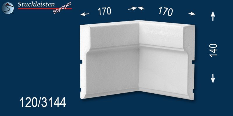 Die Außenstuck Zierleiste Bayern 120 ist ein klassisch gestaltetes Fassadenprofil aus Styropor (EPS), welches sich dank der stoßfesten Beschichtung für die Fensterumrandung an der Außenfassade hervorragend eignet. Das Außenstuck Profil ist 140 mm hoch; oben 30 mm stark. Mithilfe der Fassadenstuck Zierleiste Bayern 120 und den dazu passenden einbaufertigten Ergänzungselementen lassen sich stilvolle Fensterumrandungen einfach realisieren. Die Fassadenprofile können nach Abschluss der Stuckarbeiten mit einer umweltfreundlichen Fassadenfarbe auf Wasserbasis (sogenannter Dispersionsfarbe) gestrichen werden.