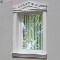 34. Eleganter Fensterstuck mit geradem Fenstergiebel Tympanon Canberra 107-F, Faschenleiste Hannover 123 und Außenfensterbank Jakarta 106-F
