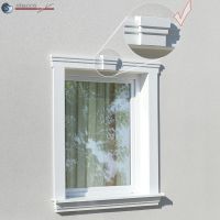 Dreiseitige Fensterumrahmung: Beschichtete Fassadenstuck Stuckleisten Bangkok 103 für den Fenstersturz und die Fensterseiten. Die in Größe und Stuckmuster passenden 90-Grad-Eckelemente erleichtern die Ausführung der Stuckarbeiten.