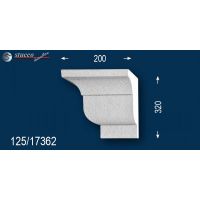 Das Fassadenprofil Köln 125 ist eine dekorative Zierleiste aus Styropor (EPS), die mit einer speziellen Beschichtung versehen ist, über ein klassisches Stuckmuster verfügt und sich deshalb hervorragend zur Fassadenverzierung eignet. Diese stoßfeste Zierleiste ist 320 mm hoch und 170 mm tief. Das Stuckprofil Köln 125 wird als Dachgesims verwendet und kann nach Abschluss der Stuckarbeiten mit einer umweltfreundlichen Fassadenfarbe auf Wasserbasis (sogenannter Dispersionsfarbe) gestrichen werden. Das Dachgesims, auch Traufgesims genannt, ist der Abschluss der Fassade zum Dach hin und umgürtet das Gebäude wie ein Kranz, weshalb es auch als Kranzgesims bezeichnet wird. Das Stuckmuster der Zierleiste Köln 125 ist harmonisch und dezent, passt sehr gut zu klassischen und modernen Fassaden. Das beschichtete Dachgesimsprofil Köln 125 ist der größere Bruder zu dem beschichteten Traufgesims Bonn 126.