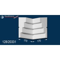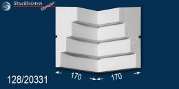 Weitere Ergänzungselemente sind die unterschiedlichen Eckelemente. Mit dem äußeren Eckelement lässt sich die Fassadenstuck Zierleiste Stuttgart 128 als Umlaufgesims verwenden. Diese 90-Grad-Ecken brauchen Sie nur an den Hausecken anzukleben, dann die entsprechend langen Zierleisten dazwischen zu kleben und schon können Sie Ihren Erfolg bewundern. Wenn Sie die Gesimsprofile um einen Erker, Balkon oder Hausanbau herumführen möchten, brauchen Sie auch das innere Eckelement, das das Stuckmuster von der Hauswand zum Anbau hinführt.