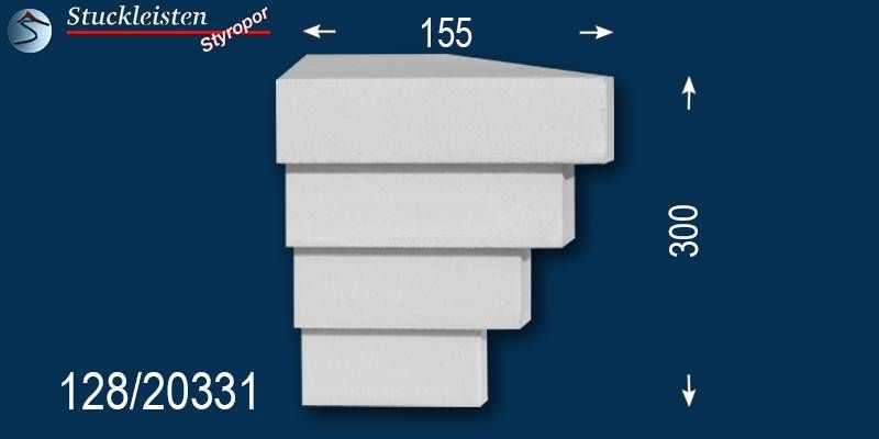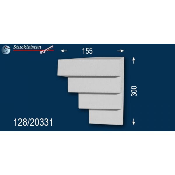 Das stoßfest beschichtete Gurtgesims Stuttgart 128 ist ein schlicht gehaltenes Fassadenprofil aus Styropor (EPS), welches sich dank der stoßfesten Beschichtung für die Verzierung der Hausfassade eignet. Das Gurtgesims Stuttgart 128 ist 300 mm hoch und 140 mm stark. Mit Hilfe der Gesimsleiste Stuttgart 128 sowie den dazu passenden vorgefertigten Schließelementen und Eckelementen können stilvolle Geschossgesimse, Gurtgesimse und Umlaufgesimse einfach realisiert werden. Das beschichtete Gurtgesims Stuttgart 128 ist der größere Bruder zum beschichteten Gesimsprofil Mannheim 129 und der kleinere Bruder zum beschichteten Fassadenprofil Leipzig 132. Die Fassadenprofile können nach Abschluss der Stuckarbeiten mit einer umweltfreundlichen Fassadenfarbe auf Wasserbasis (sogenannter Dispersionsfarbe) gestrichen werden.