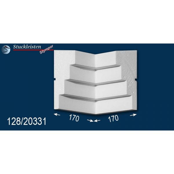 Das stoßfest beschichtete Gurtgesims Stuttgart 128 ist ein Fassadenprofil aus Styropor zur Fassadengestaltung mit Gesimsen und kann mit Farben auf Wasserbasis gestrichen werden. Das beschichtete Gurtgesims Stuttgart 128 ist der größere Bruder zum beschichteten Gesimsprofil Mannheim 129 und der kleinere Bruder zum beschichteten Fassadenprofil Leipzig 132. Als Umlaufgesims oder Gurtgesims belebt es die Hausfassade. Die Außenstuck Zierleiste kann mit zahlreichen anderen Fassadenelementen für moderne und abwechslungsreiche Stuckfassaden genutzt und mit Farben auf Wasserbasis gestrichen werden. Die Schließelemente und Eckelemente sind in Größe und Stuckmuster auf das wetterfest beschichtete Gesimsprofil abgestimmt.
