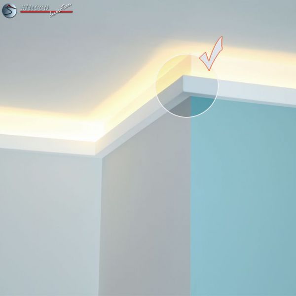 Die Stuckleiste Innsbruck 214 für indirekte Wandbeleuchtung ist eine praktische und dekorative Wandleiste. In die innere Aussparung der Zierleiste können neben den LED Reflektorstreifen aus Aluminium und den LED Strips auch die Plexistreifen als Staubschutz für die LED Strips eingebaut werden.