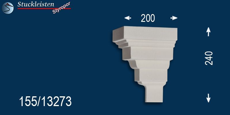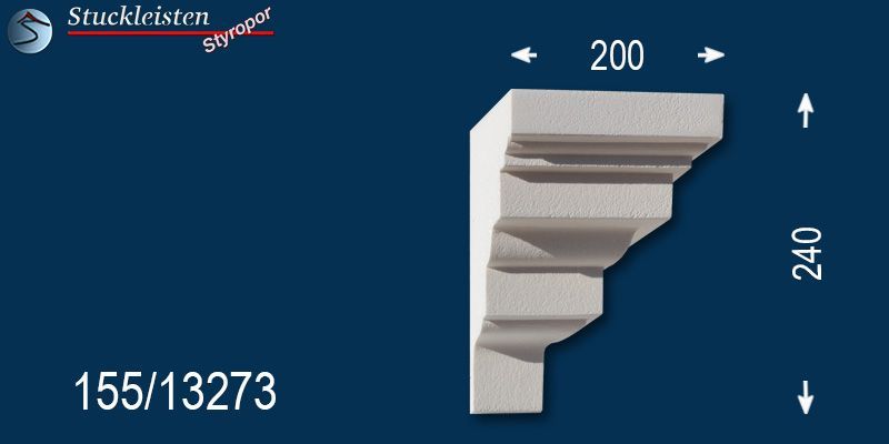 Das Stuckgesims Kassel 155 ist ein klassisch gestaltetes Fassadenprofil aus Styropor (EPS), welches sich dank der stoßfesten Beschichtung für die Fassadenverzierung an der Außenfassade hervorragend eignet. Das Dachgesims ist 240 mm hoch; oben 130 mm und unten 13 mm stark. Mit Hilfe der Fassadenstuck Zierleiste Kassel 155 und den dazu passenden einbaufertigen Ergänzungselementen können stilvolle Fassadengestaltungen einfach realisiert werden. Die Fassadenprofile können nach Abschluss der Stuckarbeiten mit einer umweltfreundlichen Fassadenfarbe auf Wasserbasis (sogenannter Dispersionsfarbe) gestrichen werden.