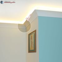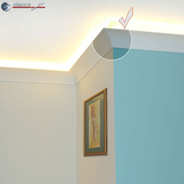 Die Stuckleiste Sölden 213 Plexi Plus für indirekte Wandbeleuchtung ist eine praktische und dekorative Wandleiste. In die innere Aussparung der Zierleiste können neben den LED Reflektorstreifen aus Aluminium und den LED Strips auch die Plexistreifen als Staubschutz für die LED Strips eingebaut werden.