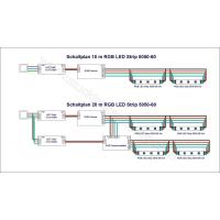 Beispiel Schaltplan zum Anschluss von 10 m bzw. 20 m RGB LED Strips