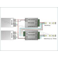 Auf diesem Bild zeigen wir 2 Beispiel-Schaltpläne für den Anschluss mehrfarbiger RGB Strips von 10 m bzw. 20 m Länge. Wie das Bild gut sichtbar darstellt, müssen die 10 m RGB Strips mit Parallelschaltung an den RGB Controller angeschlossen werden. Bei 20 m brauchen Sie noch extra einen Signalverstärker, der zwischen Controller und RGB Strip installiert werden muss, da die Signale des RGB Controllers verstärkt werden.