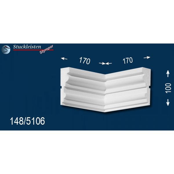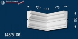 Weitere Ergänzungselemente sind die unterschiedlichen Eckelemente. Mit dem äußeren Eckelement lässt sich die Fassadenstuck Zierleiste Magdeburg 148 als Umlaufgesims verwenden. Diese 90-Grad-Ecken brauchen Sie nur an den Hausecken anzukleben, dann die entsprechend langen Zierleisten dazwischen zu kleben und schon können Sie Ihren Erfolg bewundern. Wenn Sie die Gesimsprofile um einen Erker, Balkon oder Hausanbau herumführen möchten, brauchen Sie auch das innere Eckelement, das das Stuckmuster von der Hauswand zum Anbau hinführt.