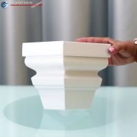 - Schneiden Sie die Außenstuck Zierleiste so auf Maß, dass nach dem Ankleben der Leistenstücke zwischen den Eckelementen/Schließelementen und der Profilleiste 5-8 mm breite Stoßfugen entstehen.
