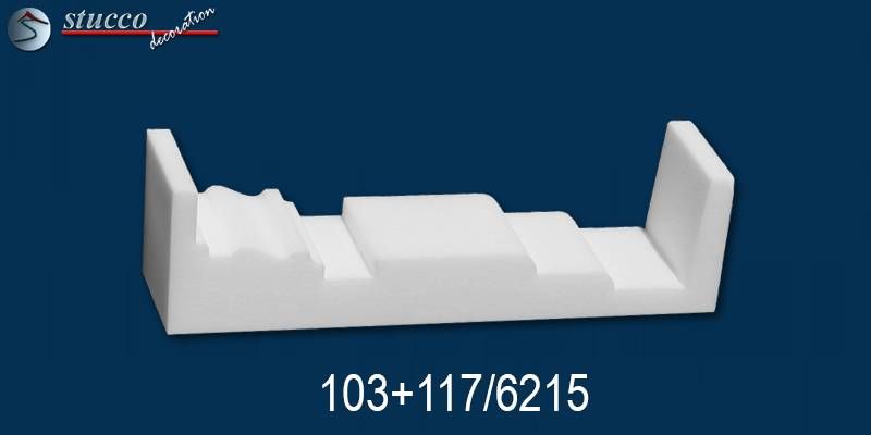 Zierleiste für Fenstersturz: Stoßfestes Gesimsprofil aus Styropor Hamburg 103+117/6215 zu dem Sie auf der Produktseite auch das passende rechte und linke Schließelement finden.