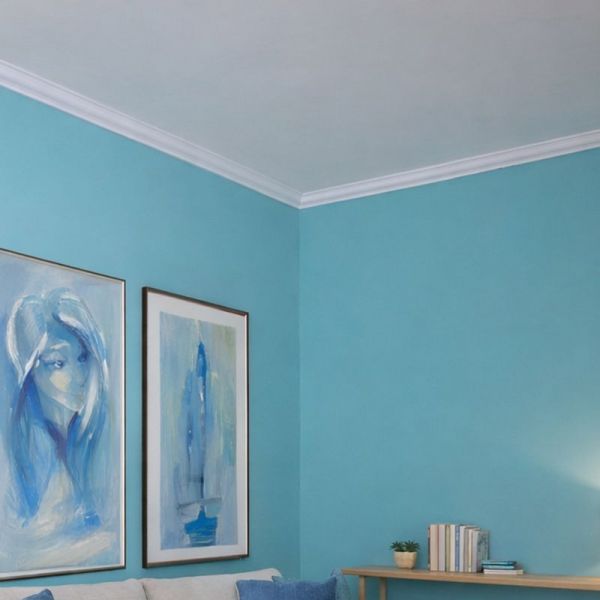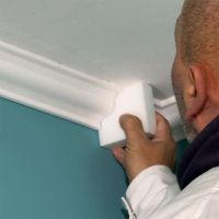 Zum Abschluß müssen die Fugen zwischen der Stuckleiste und der Decke sowie die Fugen zwischen der Wand und der Stuckleiste geschlossen werden. Dies geht einfach, indem etwas Kleber mit Hilfe der Kartuschenpresse auf die Fugen aufgebracht wird. Der Kleber lässt sich mit einem nassen Schwamm oder der angefeuchteten Fingerspitze glätten und verteilen. Wenn alle Stuckarbeiten abgeschlossen sind, brauchen Sie den Styroporstuck nur noch mit einer umweltfreundlichen Farbe auf Wasserbasis (sogenannter Dispersionsfarbe) zu streichen. Dadurch erhalten die Zierleisten und die Stöße ein einheitliches Aussehen und Ihr Stuck aus Styropor wirkt wie aus einem Guss.