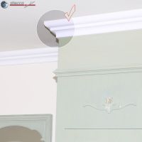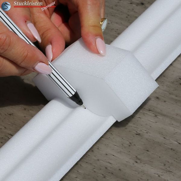 Die Vorhangleiste aus Styropor wird vor der Gardinenschiene an der Decke befestigt. Unsere Vorhangleisten sind 2 Meter lang, sie können mit einer Feinsäge auf Wunsch gekürzt werden.