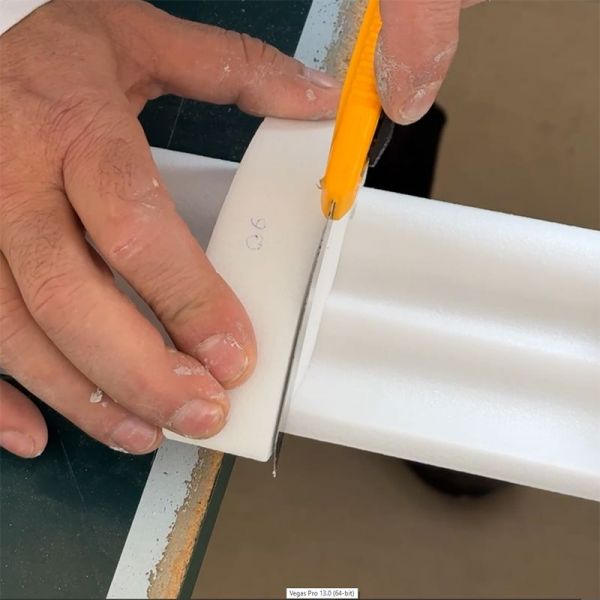 An den Stoßfugen herausgequollenen Kleber können Sie mit dem Profil-Negativ schnell entfernen und gleichzeitig das Muster der Leiste zeitsparend nachformen.