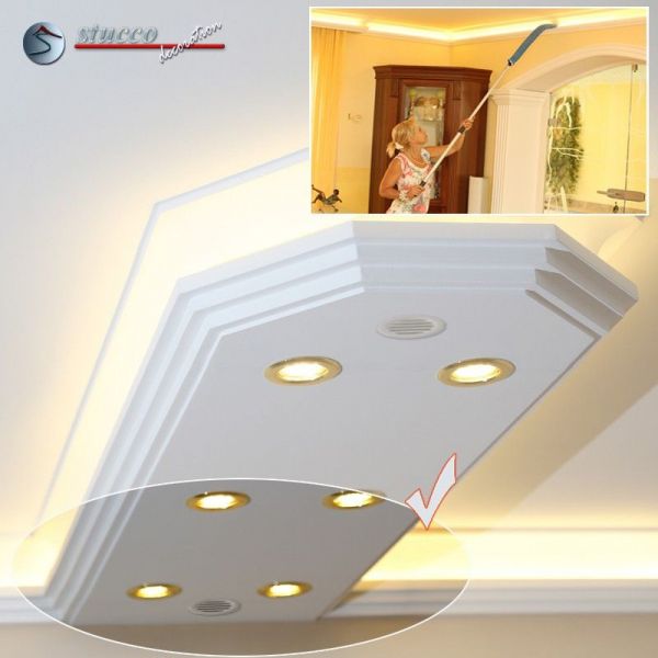 Bitte überzeugen Sie sich selbst davon, wie viele gut durchdachte und gut planbare Möglichkeiten diese Stuckleisten bieten. Es wird Ihre Fantasie bestimmt beflügeln, wenn Sie auch die Details dieser herrlichen Produkte kennen. Unsere vorgefertigten Stuckleisten-Elemente garantieren Ihnen einen einfachen und schnellen Einbau, unabhängig davon, ob Sie sich LED Spots oder LED Strips wünschen.Stellen Sie sich einmal vor, was für Möglichkeiten sich bieten: Nur einmal bauen und Sie erhalten neben einem wunderschönen, mit modernen Stuckleisten verzierten Zimmer auch eine angenehme, indirekte Beleuchtung mit LED Strips begleitet von einer direkten Beleuchtung mit LED Einbaustrahlern.