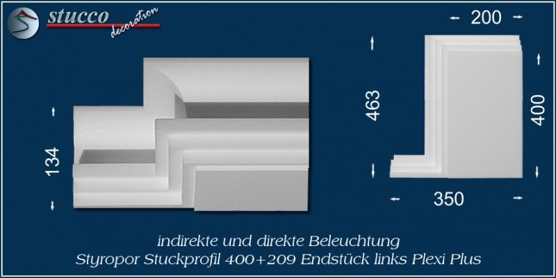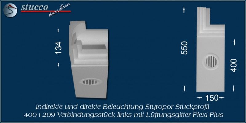 Stuckprofil für Kombi Beleuchtung Dortmund 400+209 PLEXI PLUS