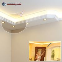 Planen Sie gerade die Wohnzimmer Beleuchtung oder die Bürobeleuchtung mit Stuck und LEDs? Alles ist mit den Lichtleiste für die direkte und indirekte Deckenbeleuchtung, LED Spots und LED Stripes möglich! In den unteren Teil der Kombi Lichtleisten für direkte und indirekte Beleuchtung können Sie LED Spots, seitlich LED Stripes einbauen. Die U-Profile und L-Profile unserer Styroporleisten für kombinierte Beleuchtung LED haben eine Länge von 100 cm.