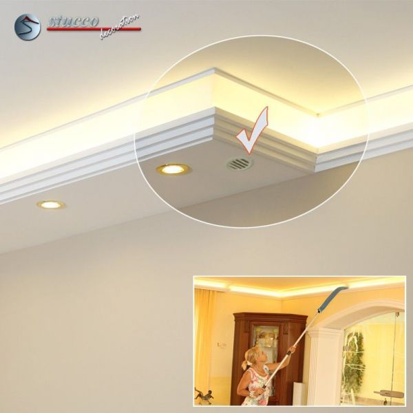 Lüftungsgitter in Stuckleisten für die LED Beleuchtung