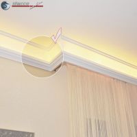 LED Stripes werden dank des LED Reflektorstreifens die Stuckleisten für die indirekte Deckenbeleuchtung nicht durchleuchten. So wird von Aussen nicht sichtbar, dass die Kabel und LED Stripes im Inneren der Stuckleiste versteckt sind. Sehen Sie den Unterschied auf unsere Bilder an! Das erste Bild zeigt die Lichtleiste ohne Reflektorstreifen. Auf dem zweiten Bild - die Lichtleiste mit Reflektorstreifen - ist der Unterschied deutlich zu merken.