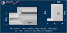 LEDs erzeugen kaum Wärme. Dennoch empfehlen wir Ihnen unsere Ergänzungselemente mit Lüftungsgitter zu verwenden, wenn Sie Trafo / Netzteil und Controller in die Stuckleisten für die LED Beleuchtung einbauen. So ist die Belüftung auch gesichert. Als Ergänzungselement mit Lüftungsgitter zu den Stuckleisten für die LED Beleuchtung bieten wir Schließelemente, Verbindungsstücke sowie Endstücke an. Die Ergänzungselemente mit Lüftungsgitter finden Sie immer auf der jeweiligen Artikelseite der Stuckleiste für die LED Beleuchtung.