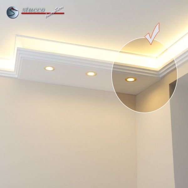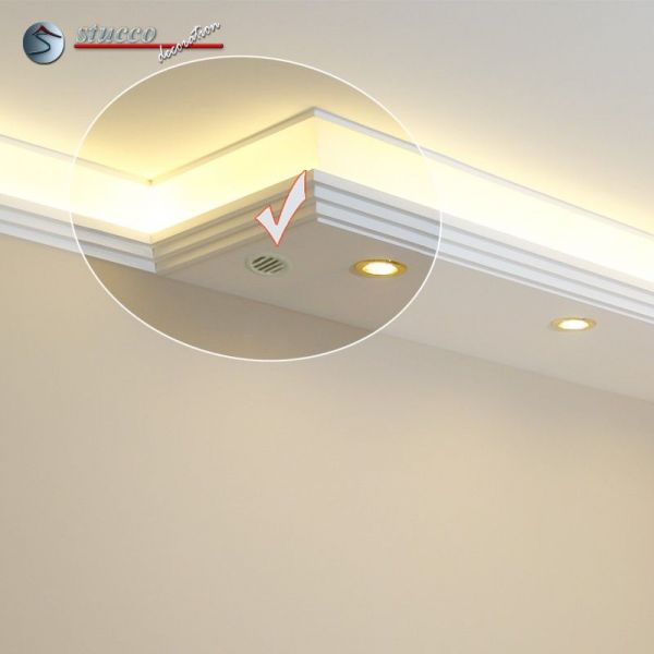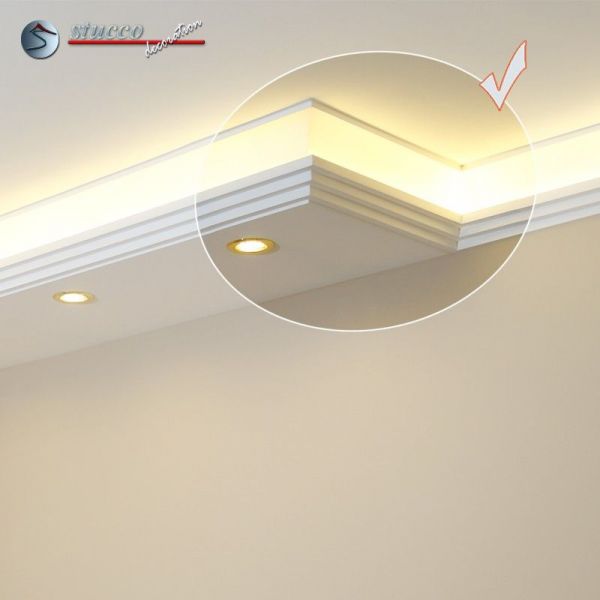 Bitte überzeugen Sie sich selbst davon, wie viele gut durchdachte und gut planbare Möglichkeiten diese Stuckleisten bieten. Es wird Ihre Fantasie bestimmt beflügeln, wenn Sie auch die Details dieser herrlichen Produkte kennen. Unsere vorgefertigten Stuckleisten-Elemente garantieren Ihnen einen einfachen und schnellen Einbau, unabhängig davon, ob Sie sich LED Spots oder LED Strips wünschen.Stellen Sie sich einmal vor, was für Möglichkeiten sich bieten: Nur einmal bauen und Sie erhalten neben einem wunderschönen, mit modernen Stuckleisten verzierten Zimmer auch eine angenehme, indirekte Beleuchtung mit LED Strips begleitet von einer direkten Beleuchtung mit LED Einbaustrahlern.