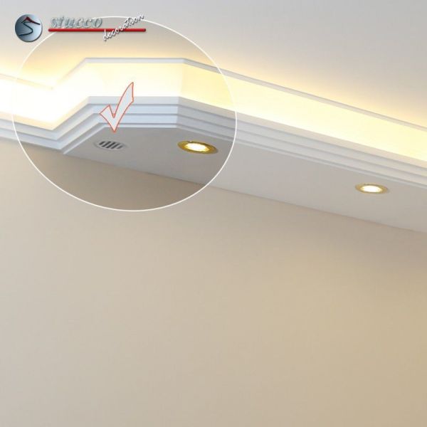 Lüftungsgitter in Stuckleisten für die LED Beleuchtung