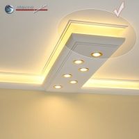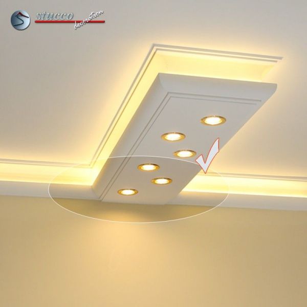 Stuckleiste für direkte und indirekte Deckenbeleuchtung mit LED Einbaustrahler und LED Stripes