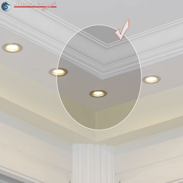 Sollten Sie nur entlang einer bestimmten Wand die LED-Spot-Beleuchtung ausbauen wollen, können Sie die L-förmigen und U-förmigen Stuckprofile mittels der passenden Ergänzungselemente ganz unkompliziert mit der klassischen Stuckleiste Düren 21 verbinden.