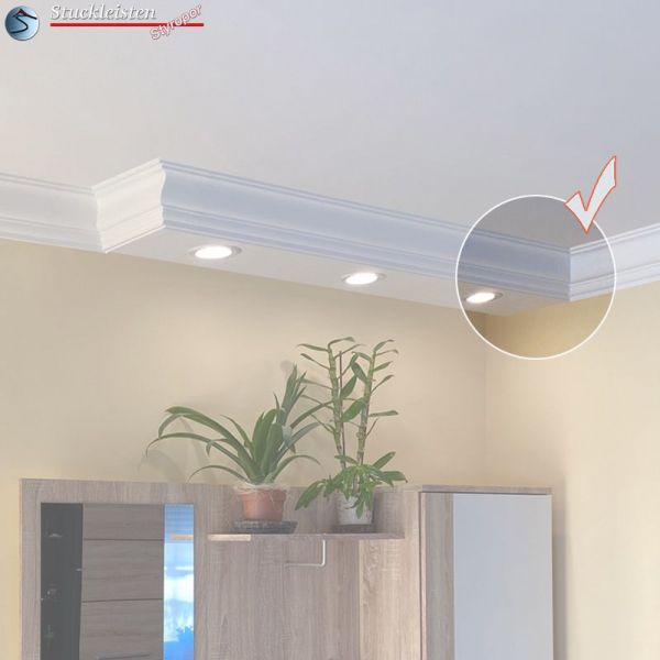 Die Antwort ist ganz einfach: mit Styropor Stuckleisten für LED Spot Beleuchtung. Oben auf dieser Seite haben wir schon unsere Stuckprofile für die direkte Beleuchtung ausführlich vorgestellt. Sehen wir uns jetzt die LED Leuchtmittel an. Lesen Sie bitte weiter und informieren Sie sich auch über die LED Einbauspotlampen, um die bestmögliche Entscheidung treffen zu können.