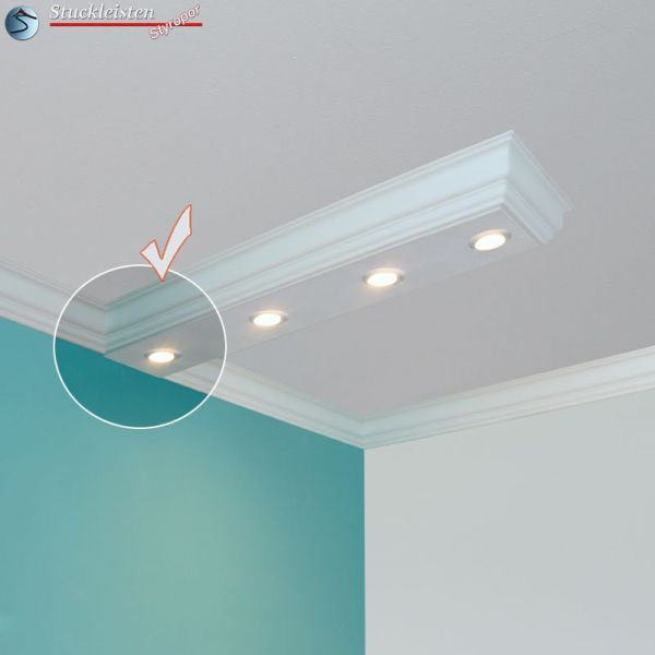 In den letzten Jahren wurden Glühlampen und Halogenleuchtmittel gegen energiesparende LEDs ausgetauscht. Der einfache Einbau, der niedrige Energieverbrauch und das angenehm strahlende Licht sind nur einige Gründe, die für die Verwendung von LED Leuchtmitteln sprechen. Doch gab es früher auch Herausforderungen bei der Montage, meistens wurden die Leuchtmittel in Rigipsplatten eingebaut. Eine direkte Beleuchtung mit Rigips ist zwar eine schöne Lösung, aber einerseits kosten- und zeitintensiv, andererseits ohne Fachmann nur sehr schwer realisierbar. Gerade deshalb haben wir Stuckleisten aus Styropor für den Einbau von LED Spots entwickelt. Stuck aus Styropor ist nämlich viel günstiger, lässt sich schneller und praktischer einbauen und das auch ohne Fachmann.