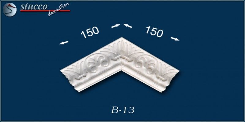 Die Stuckprofile B13 sind zur Verzierung der Schnittlinie zwischen Wand und Decke. Das ausdrucksstarke Blütenmotiv ermöglicht Ihnen eine schnelle, einfache und langlebige Raumgestaltung. Die Styroporleiste kann mit Farben auf Wasserbasis gestrichen werden. In Größe und Stuckmuster zum Stuckprofil B13 passende Innenecken und Außenecken erleichtern Ihnen die Stuckarbeiten.