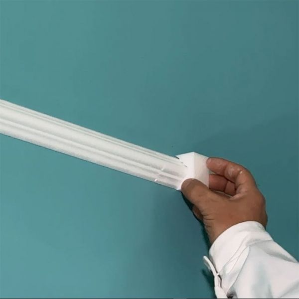 Beim Erstellen von kassettierter Wandverkleidung oder Bilder- bzw. Spiegelrahmen erleichtert das vorgefertigte, flaches 90-Grad-Eckelement die Verarbeitung erheblich.