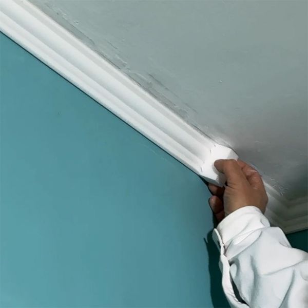 4. Die Eckelemente der Stuckleisten ankleben