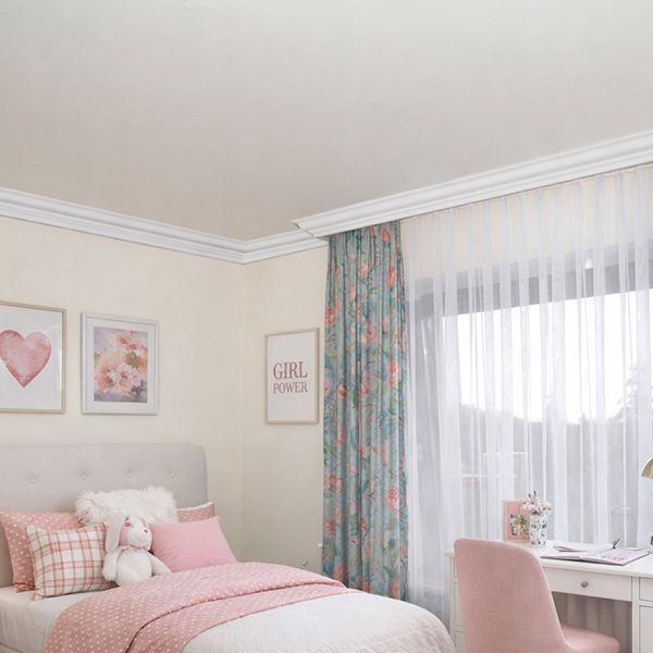Die Vorhangleiste Roma 28 ist eine Zierleiste mit identischem Muster und identischen Abmessungen wie die Stuckleiste Eindhoven 06 und wurde zur Abdeckung der Gardinenschiene konzipiert. Die klassische Hohlkehlleiste verfügt über zwei Klebeflächen: die obere ist zur Befestigung an der Decke und die hintere für die Wand. Soll mit der Stuckleiste jedoch ausschließlich eine Gardinenschiene verdeckt werden, steht nur eine Klebefläche – die an der Decke – zur Verfügung. Für diesen Zweck wurde die Gardinenkasten-Zierleiste entwickelt. Ihre Maße und ihr Design entsprechen der gleichnamigen Hohlkehlleiste, lediglich die obere Klebefläche wurde vergrößert, sodass eine stabile Befestigung an der Decke gewährleistet ist.