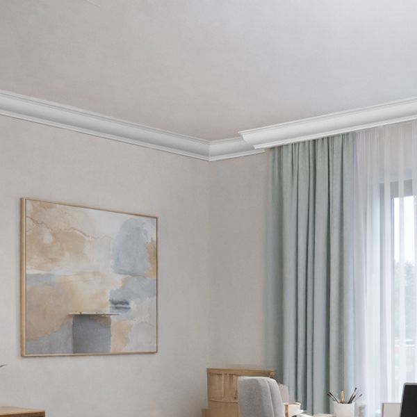 Die Vorhangleiste Paris 34 ist zum Weiterführen der Styropor Stuckleiste Paris 34 vor den Gardinenschienen. Mit dieser Vorhangleiste lassen sich die Gardinen- und Vorhangschienen elegant verbergen. Auch diese Styroporleisten können mit Farben auf Wasserbasis gestrichen werden. In Größe und Stuckmuster zur Vorhangleiste Paris 34 passende Innenecken, Außenecken und das Profilnegativ erleichtern Ihnen die Stuckarbeiten.