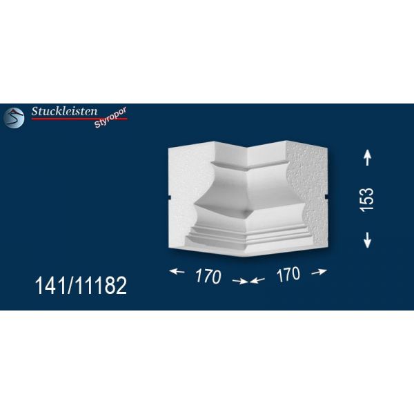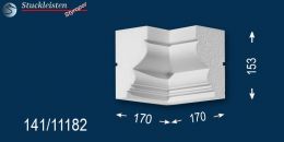 Weitere Ergänzungselemente sind die unterschiedlichen Eckelemente. Mit dem äußeren Eckelement lässt sich die Fassadenstuck Zierleiste Bielefeld 141 als Umlaufgesims verwenden. Diese 90-Grad-Ecken brauchen Sie nur an den Hausecken anzukleben, dann die entsprechend langen Zierleisten dazwischen zu kleben und schon können Sie Ihren Erfolg bewundern. Wenn Sie die Gesimsprofile um einen Erker, Balkon oder Hausanbau herumführen möchten, brauchen Sie auch das innere Eckelement, das das Stuckmuster von der Hauswand zum Anbau hinführt.