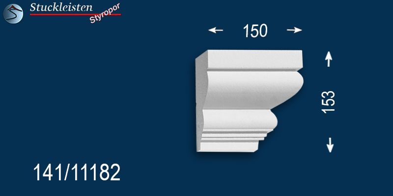 Auf dem Produktbild mit dem blauen Hintergrund finden Sie die Maße der beschichteten Fassadenzierleiste Bielefeld 141. Prüfen Sie bitte vor dem Bestellen, ob genügend Platz zum Anbringen der Stuckelemente zur Verfügung steht. Diese Fassadenstuckleiste lässt sich aufgrund des zeitlosen, schlichten Musters sehr gut mit anderen Fassadenelementen und Stuckmustern kombinieren. Kontrollieren Sie anhand der Maße auch, ob die verschiedenen, ausgewählten Zierleisten in der Stärke/Tiefe zueinander passen.