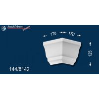 Weitere Ergänzungselemente sind die unterschiedlichen Eckelemente. Mit dem äußeren Eckelement lässt sich die Fassadenstuck Zierleiste Flensburg 144 als Umlaufgesims verwenden. Diese 90-Grad-Ecken brauchen Sie nur an den Hausecken anzukleben, dann die entsprechend langen Zierleisten dazwischen zu kleben und schon können Sie Ihren Erfolg bewundern. Wenn Sie die Gesimsprofile um einen Erker, Balkon oder Hausanbau herumführen möchten, brauchen Sie auch das innere Eckelement, das das Stuckmuster von der Hauswand zum Anbau hinführt.
