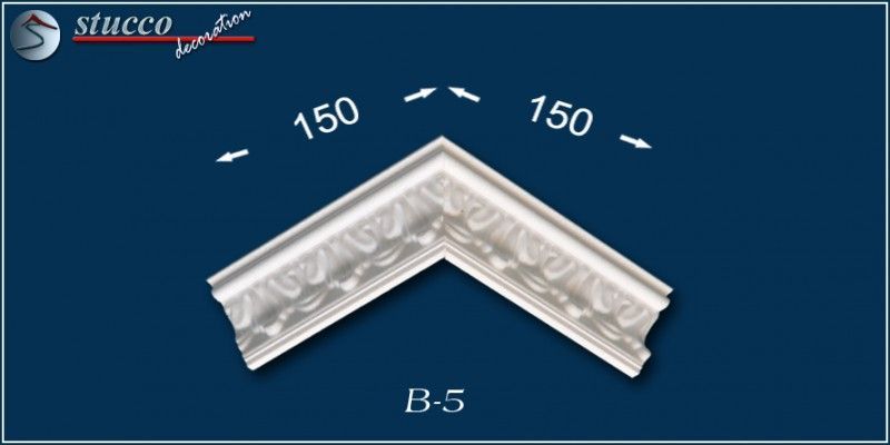 Die Stuckprofile B5 sind zur Verzierung der Schnittlinie zwischen Wand und Decke. Das Stuckmuster in Bordürenform ermöglicht Ihnen eine schnelle, einfache und langlebige Raumgestaltung. Die Styroporleiste kann mit Farben auf Wasserbasis gestrichen werden. In Größe und Stuckmuster zu den Stuckprofilen B5 passende Innenecken und Außenecken erleichtern Ihnen die Stuckarbeiten. Durch das Anbringen der Styropor Stuckleiste B5 können Sie Ihre Wohnung mühelos umgestalten. Kreieren Sie mit Styropor Stuckleisten ganz eigene Wohnideen für Ihre 4 Wände!