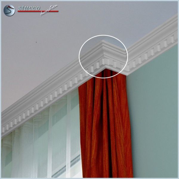 Die Zierleiste Imola 43-F ist zur Verzierung der Schnittlinie zwischen Wand und Decke. Das zinnenartig gearbeitete Stuckmuster ermöglicht Ihnen eine schnelle, einfache und langlebige Raumgestaltung. Die Styroporleiste kann mit Farben auf Wasserbasis gestrichen werden. In Größe und Stuckmuster zur Zierleiste Imola 43-F passende Innenecken und Außenecken erleichtern Ihnen die Stuckarbeiten. Mit Hilfe der Vorhangleiste können Sie das Stuckprofil auch vor den Gardinenschienen entlangführen.